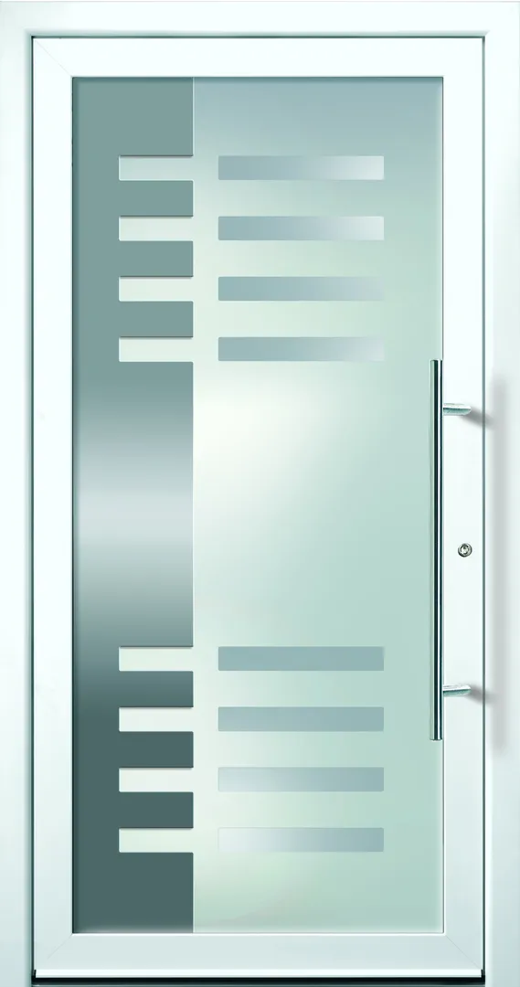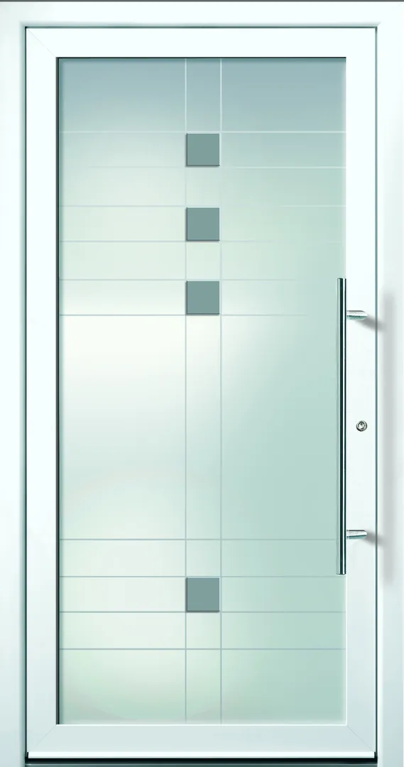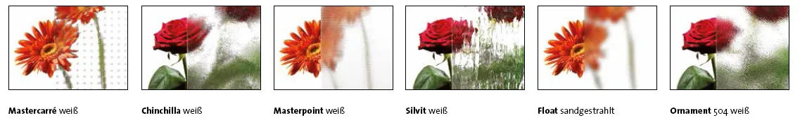 Ornamentscheibe mitte / Satinato weiß, Mastercarre weiß, Motivverglasung/ Sicherheitsglas VSG 6 mm innen