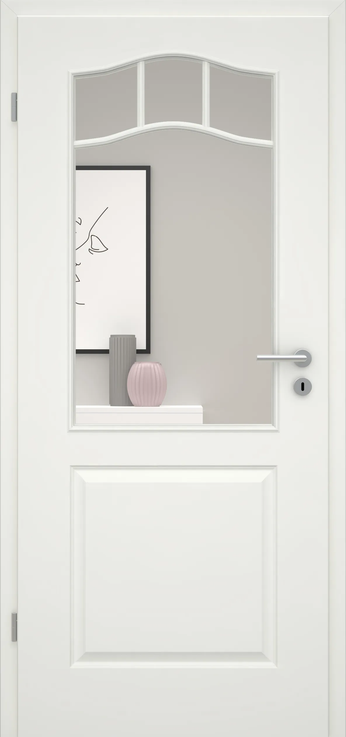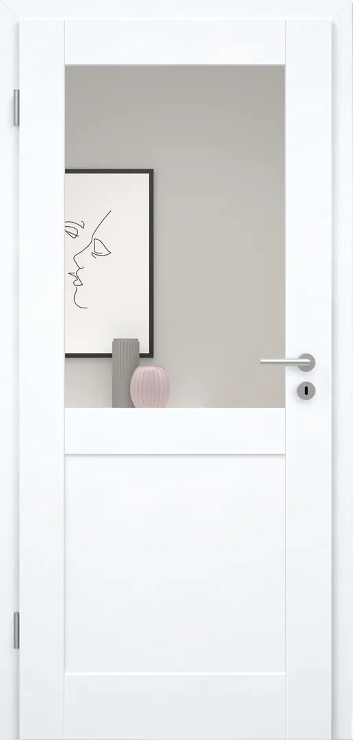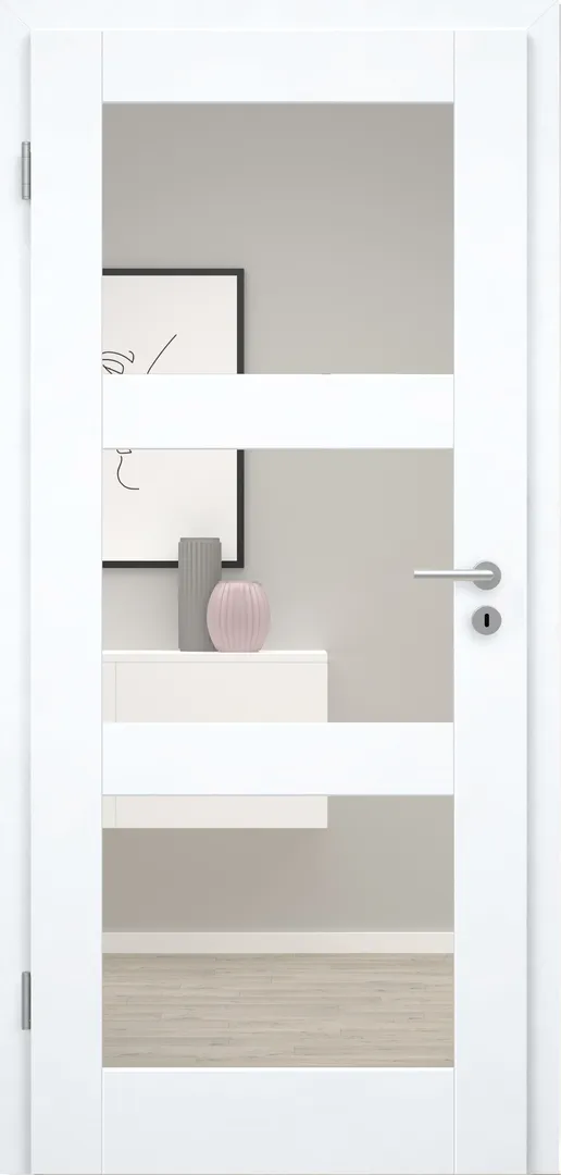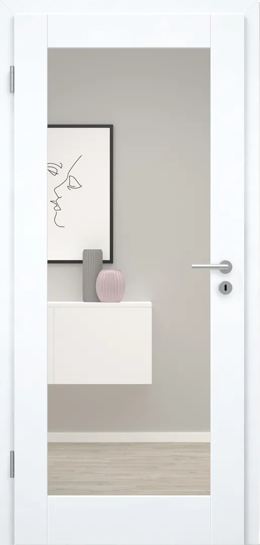 Weiß passt einfach immer – schlicht, zeitlos elegant und seit jeher Trend beim Einrichten und Wohnen. Es schafft Ruhe, Leichtigkeit und Weite im Raum. Nicht umsonst sind weiße Türen derart gefragt. Unser Weißton in Anlehnung an RAL 9010 fügt sich zurückhaltend und harmonisch in jeden Wohnraum ein und sorgt für den passenden Gesamteindruck. Das vielfältige Sortiment, angefangen von schlichten glatten Türen über Designtüren bis hin zu modernen oder klassischen Stiltüren, wahlweise auch mit Lichtausschnitten oder Lisenen – bietet eine große Auswahl für jeden Wohnstil. Besonders gut harmoniert der weiße Farbton mit gedämpften, weniger intensiven Wandfarben. Auch die Kombination mit Holzmaterialien sowie Erd- und Naturfarbtönen sorgt für ein stimmiges Erscheinungsbild und eine Wohlfühlatmosphäre.