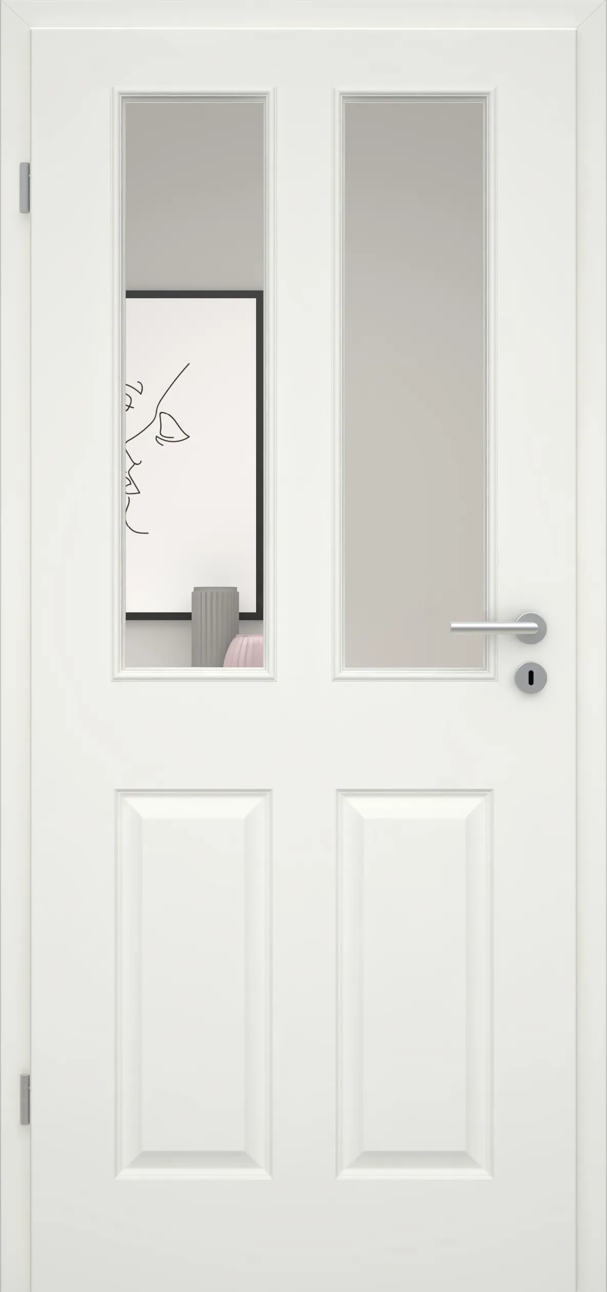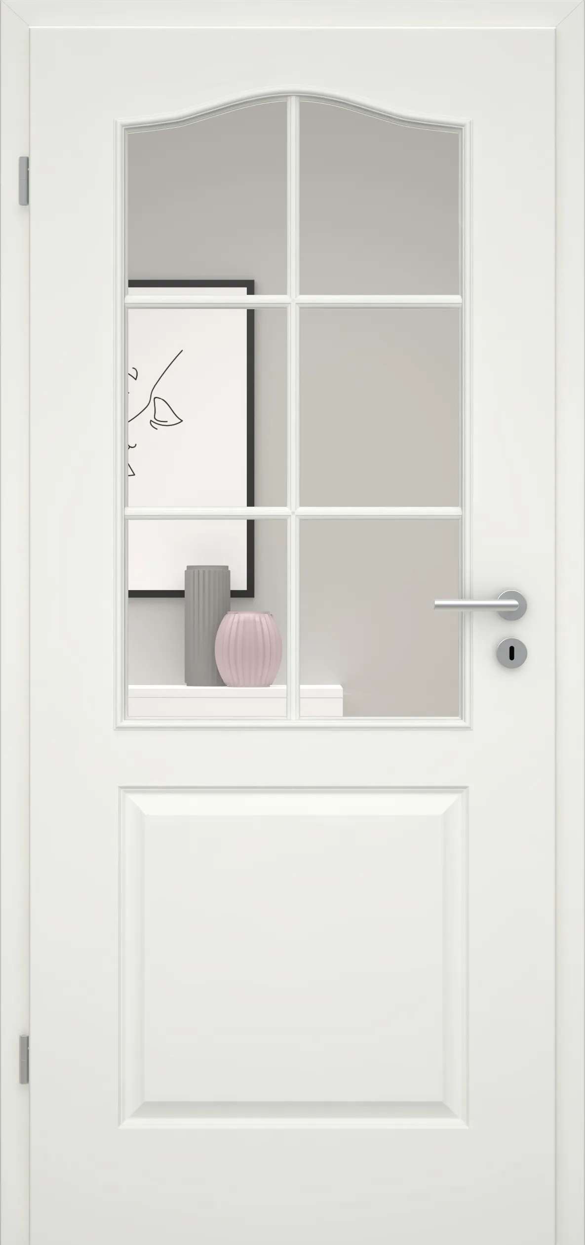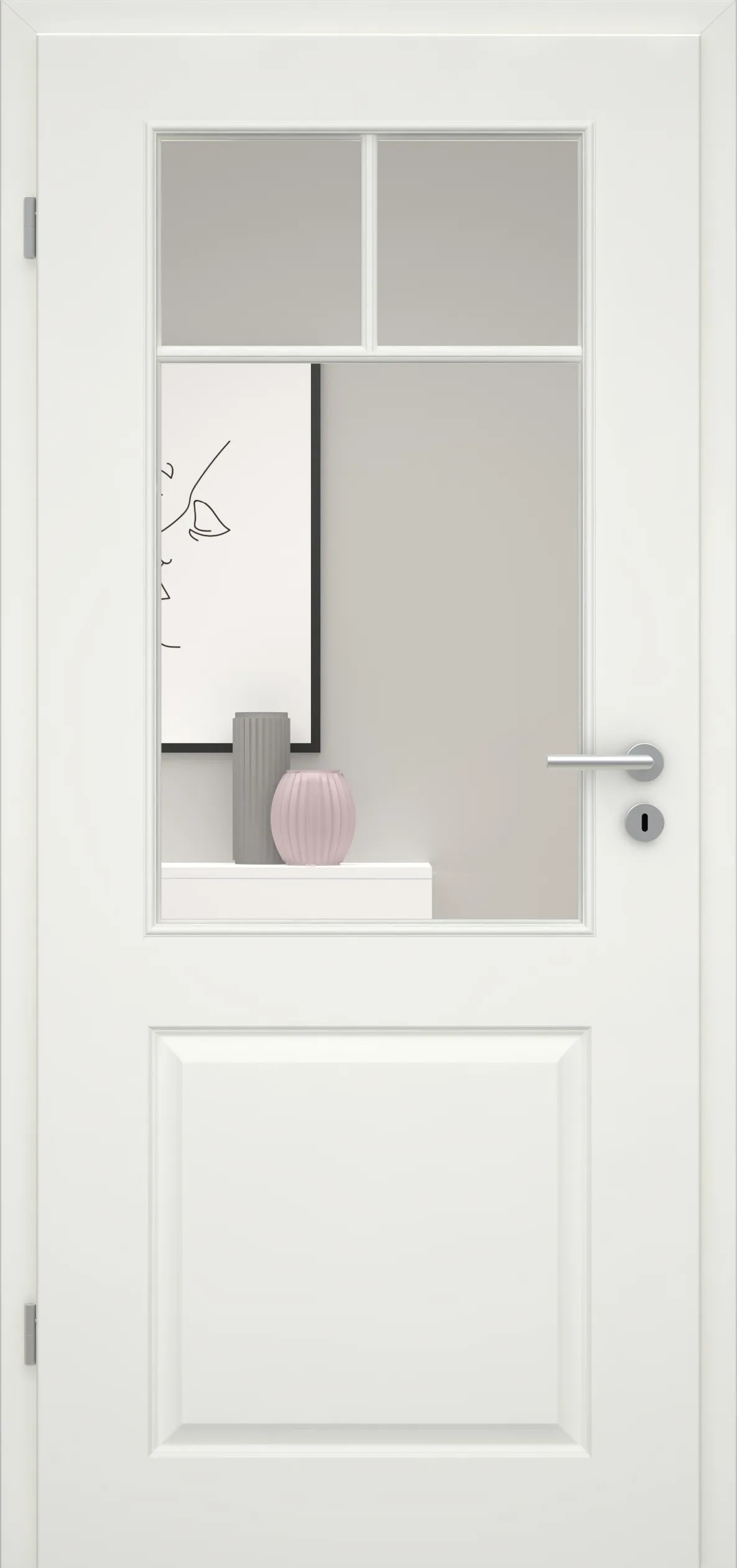 Weiß passt einfach immer – schlicht, zeitlos elegant und seit jeher Trend beim Einrichten und Wohnen. Es schafft Ruhe, Leichtigkeit und Weite im Raum. Nicht umsonst sind weiße Türen derart gefragt. Unser Weißton in Anlehnung an RAL 9010 fügt sich zurückhaltend und harmonisch in jeden Wohnraum ein und sorgt für den passenden Gesamteindruck. Das vielfältige Sortiment, angefangen von schlichten glatten Türen über Designtüren bis hin zu modernen oder klassischen Stiltüren, wahlweise auch mit Lichtausschnitten oder Lisenen – bietet eine große Auswahl für jeden Wohnstil. Besonders gut harmoniert der weiße Farbton mit gedämpften, weniger intensiven Wandfarben. Auch die Kombination mit Holzmaterialien sowie Erd- und Naturfarbtönen sorgt für ein stimmiges Erscheinungsbild und eine Wohlfühlatmosphäre.