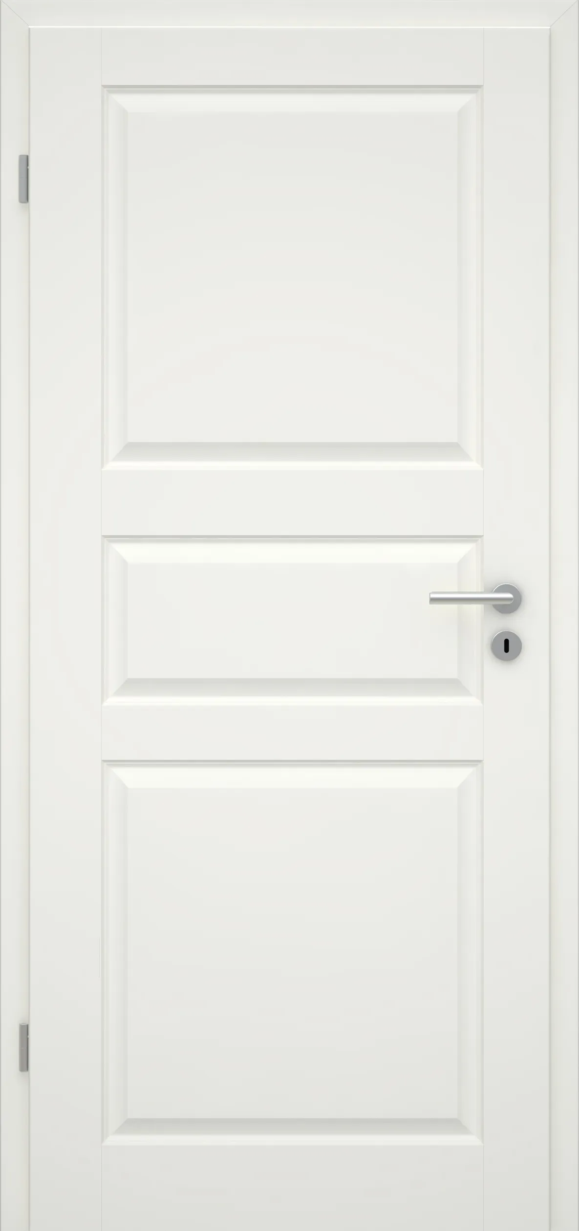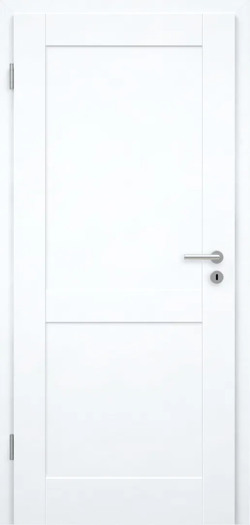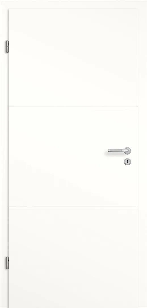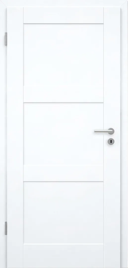 Weißlack 3.0, in Anlehnung am Farbton RAL 9003, ist einer der weißesten Farbtöne für weiße Innentüren und fügt sich bestens in jede Wohnumgebung ein. Strahlender und etwas kühler im Vergleich zum Weißlack 1.0, brilliert dieser Farbton besonders gut in modernen, hellen Räumen. Zudem bietet er einen optimalen Kontrast zur Wand- und Bodengestaltung und einzelnen Möbelstücken. Vor allem unsere schwarze Beschläge sorgen bei diesen Türen für einen modernen Kontrast und einen stimmigen Gesamteindruck.