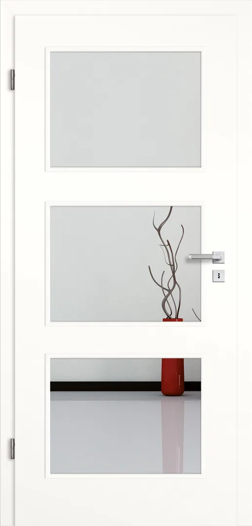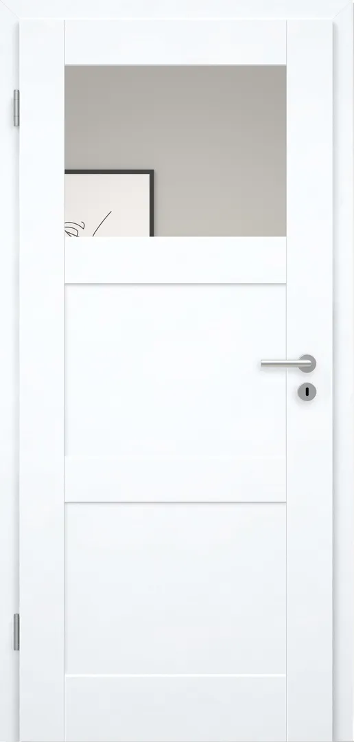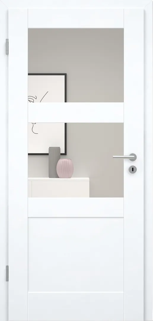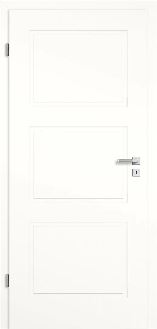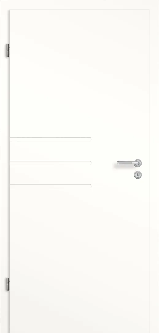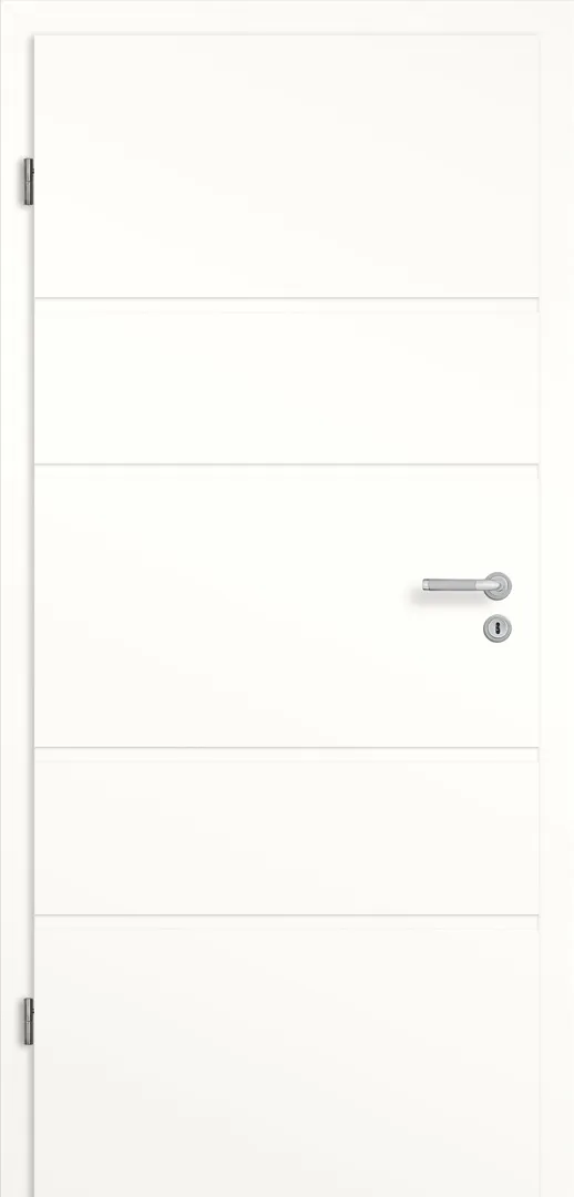 Weißlack 3.0, in Anlehnung am Farbton RAL 9003, ist einer der weißesten Farbtöne für weiße Innentüren und fügt sich bestens in jede Wohnumgebung ein. Strahlender und etwas kühler im Vergleich zum Weißlack 1.0, brilliert dieser Farbton besonders gut in modernen, hellen Räumen. Zudem bietet er einen optimalen Kontrast zur Wand- und Bodengestaltung und einzelnen Möbelstücken. Vor allem unsere schwarze Beschläge sorgen bei diesen Türen für einen modernen Kontrast und einen stimmigen Gesamteindruck.