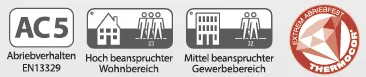 Besonders langlebig dank Thermocor-Beschichtung. Diese Beschichtung wird mit einem Spezialverfahren aufgetragen, wodurch ein sehr starker Abriebwiderstand erreicht wird. Dank höchster Abrieb- und UV-Beständigkeit sowie Stoß- und Kratzfestigkeit sorgt die Thermocor®-Beschichtung auch bei extrem starkem Gebrauch im Objektbereich für ein langes Bodenleben. Die Oberfläche ist dadurch dauerhaft geschützt, leicht und unkompliziert zu reinigen.